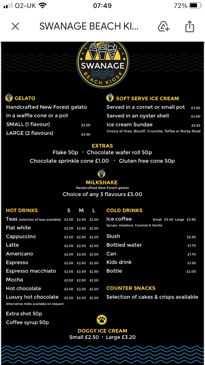 Swanage Beach Kiosk offers a delightful menu for beachgoers and casual visitors looking for a quick, satisfying treat. Among the highlights are the creamy Vegan Ice Cream, perfect for those with dietary preferences, alongside the indulgent Belgian Waffle, a sweet and satisfying choice for dessert lovers. For a refreshing drink, the 7up is a great option, offering a zesty, crisp flavor that complements the light bites. If you’re in the mood for a warm, comforting beverage, the Hot Chocolate is rich and velvety, ideal for cooler days by the beach. For a little pick-me-up, the Cappuccino provides a smooth and energizing caffeine fix. The addition of fresh Strawberries to various dishes adds a touch of sweetness, balancing the richness of the waffles or standing alone as a healthy snack. Together, these offerings create a simple yet satisfying menu that complements the seaside experience at Swanage Beach Kiosk.
